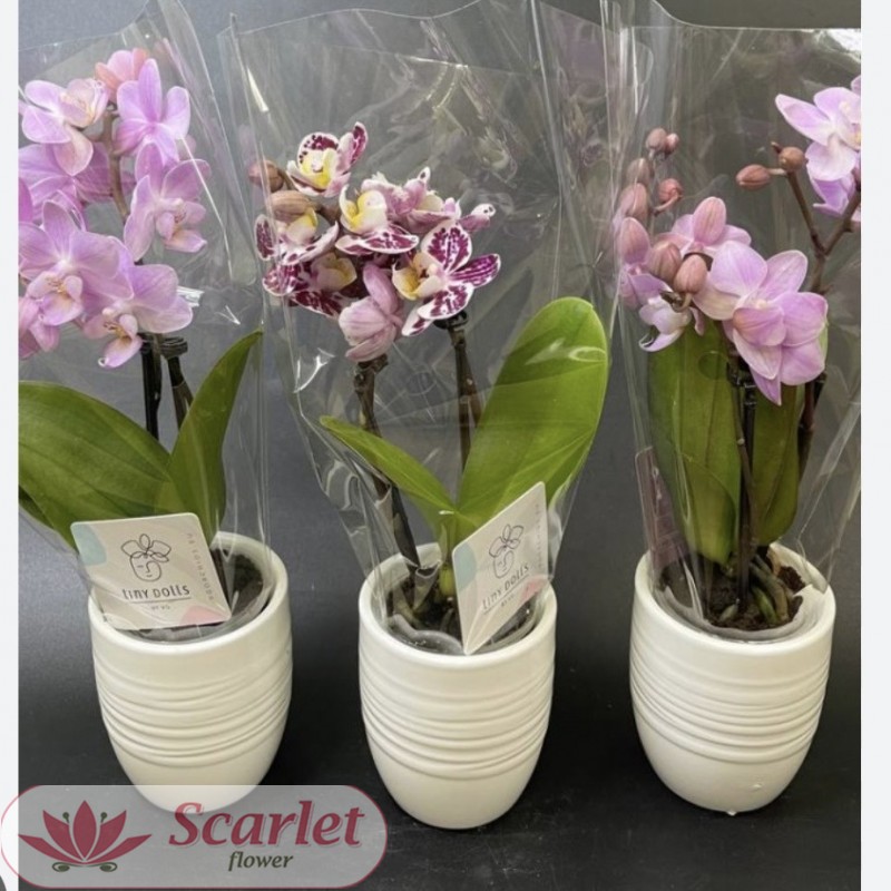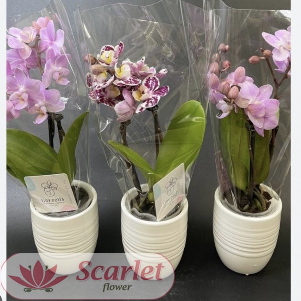 Фаленопсис мини микс в керамическом кашпо. Гибрид карликовый высота 18-20 см