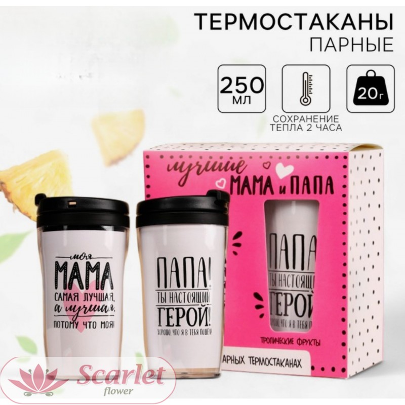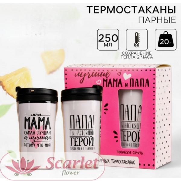 Оригинальный и практичный, отличный подарок родителям, на годовщину или просто так, знак внимания.В набор входит2 термостакана*250 мл, чай 2 шт*20г