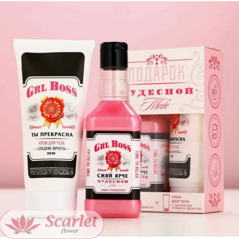 В набор входит гель для душа виски 250 мл, крем для тела 20 мл. Торговая марка "Чистое счастье"  Пр-во Россия