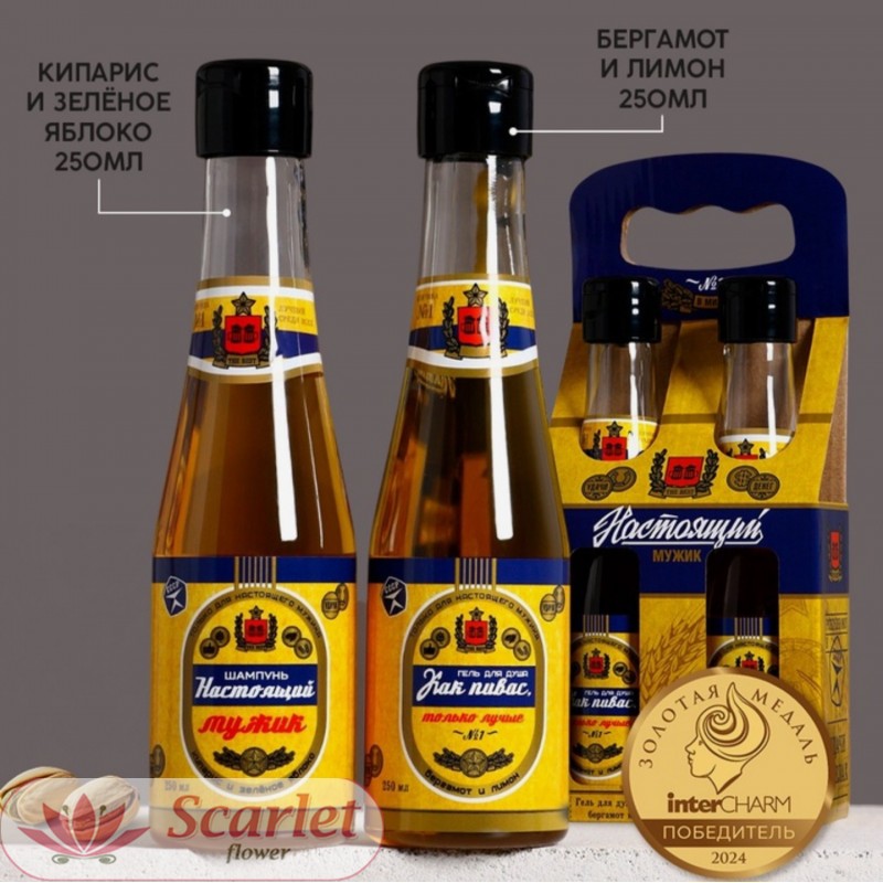 В набор входит шампунь и гель для душа, 2*250 мларомат бергамонт, кипарис, лимон, яблоко. Торговая марка "Чистое счастье" Пр-во Россия
